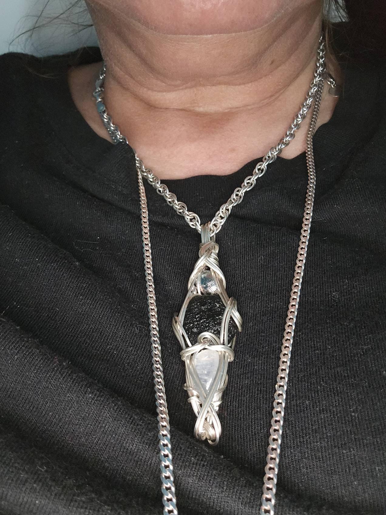 This is by far my new favorite piece in my collection. It's the only pendent I have ever found with the unique and powerful combination of the Herkimer, Moldavite, and Super 7. And the craftsmanship so so unique and detailed. I also love the personalized letter of how and where it was crafted :).