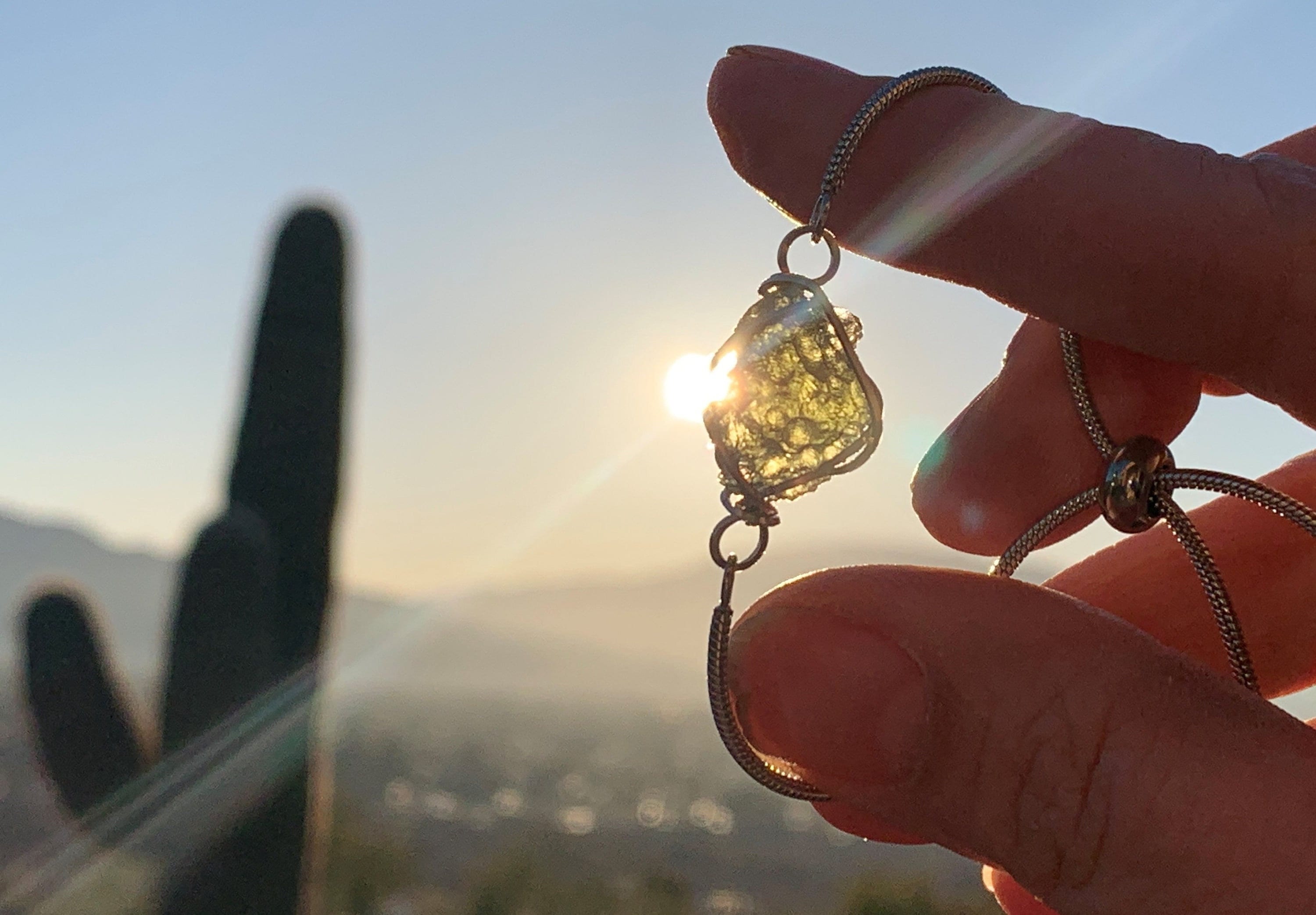 I was using google maps and planning my next trip to Sedona. I was drawn to the patterns in the mountains near Boyton Canyon. I stared at it a bit and then finished my planning. On that trip, I randomly chose a a moldavite crystal, and without thinking, I did a new wrap on it. Later I realized how it looked like those sacred mountains! The designs seems to capture and direct the crystal. I felt a more focused energy from it. I just love when that happens! Sandra
