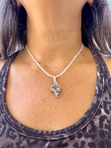 Silver-Wire-Wrapped, Campo-Del-Cielo Pendant is artistically, securely wrapped, and perfectly sized. It goes well with my 15-inch chain. Excellent customer service! Thanks.