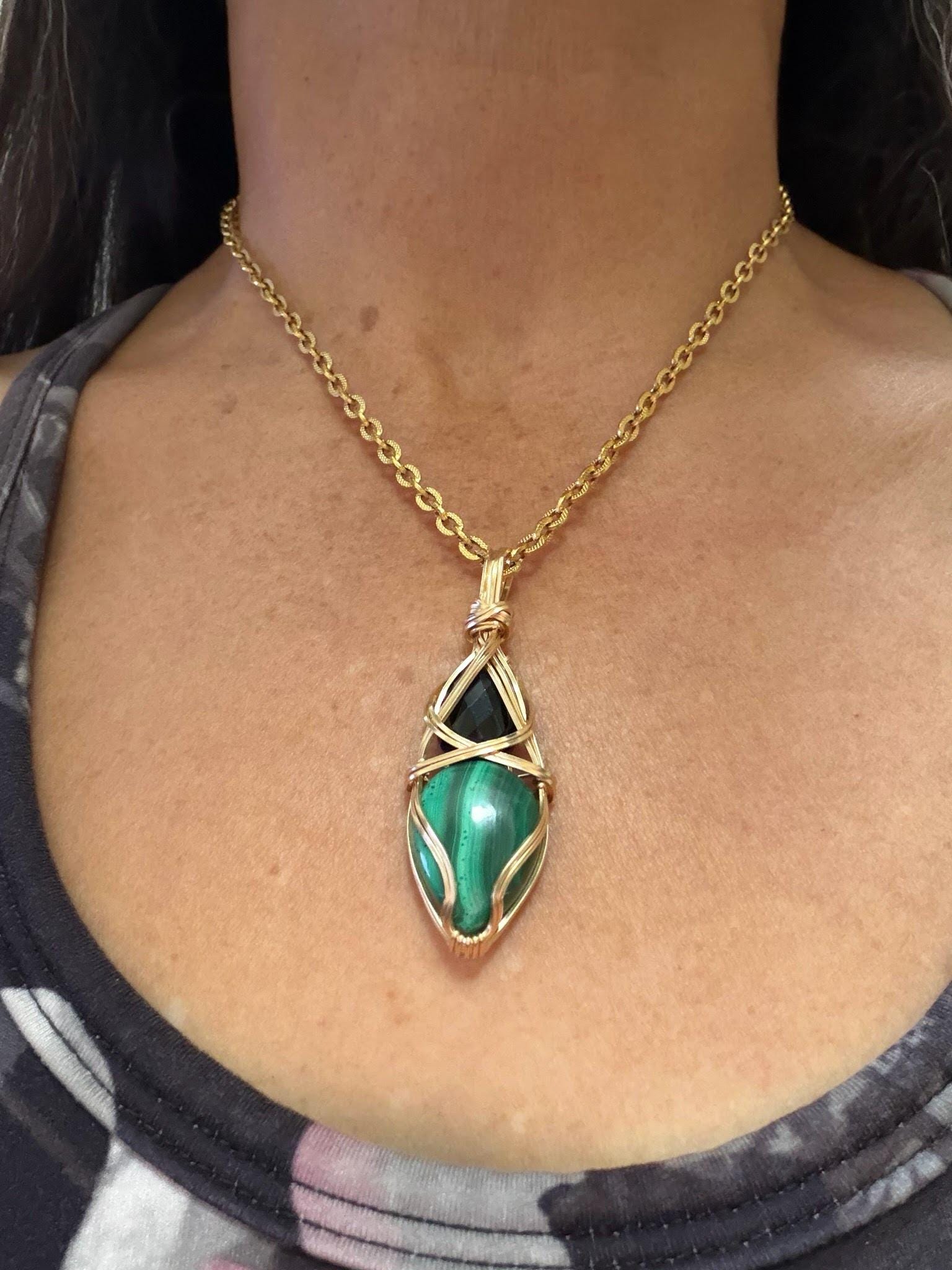 Onyx/Malachite Pendant. Pretty, happy, green Malachite crystal. Well packaged. Fast shipping. Thanks!