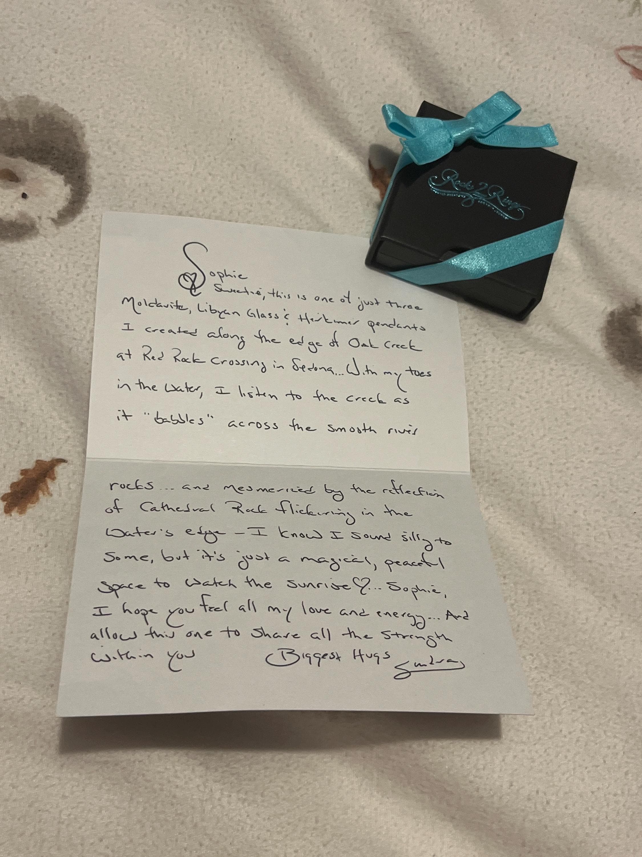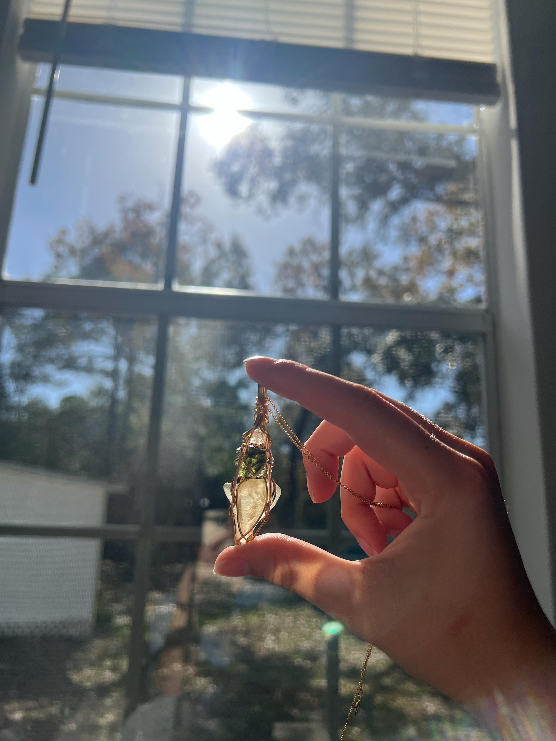 I am very impressed. Absolutely deserves 5 stars Reasons: 1. The piece is gorgeous, the tektites, herkimer, and especially the hand made craft. The wiring detail around the stones is amazing. 2. Her service is wonderful even without me communicating with her 1on1. The presentation and effort she put into her work made my experience of receiving and opening up my piece great. 3. Hand written letter with details on where she made it and she put a sweet message for me at the end🥹 4. my item got here two days early. She shipped it out very fast and I really appreciate that. I definitely recommend getting a piece from her. If you are wanting to get any sort of crystals, her work is beautiful. She clearly loves what she does and that is well appreciated. Thank you, Sandra..
