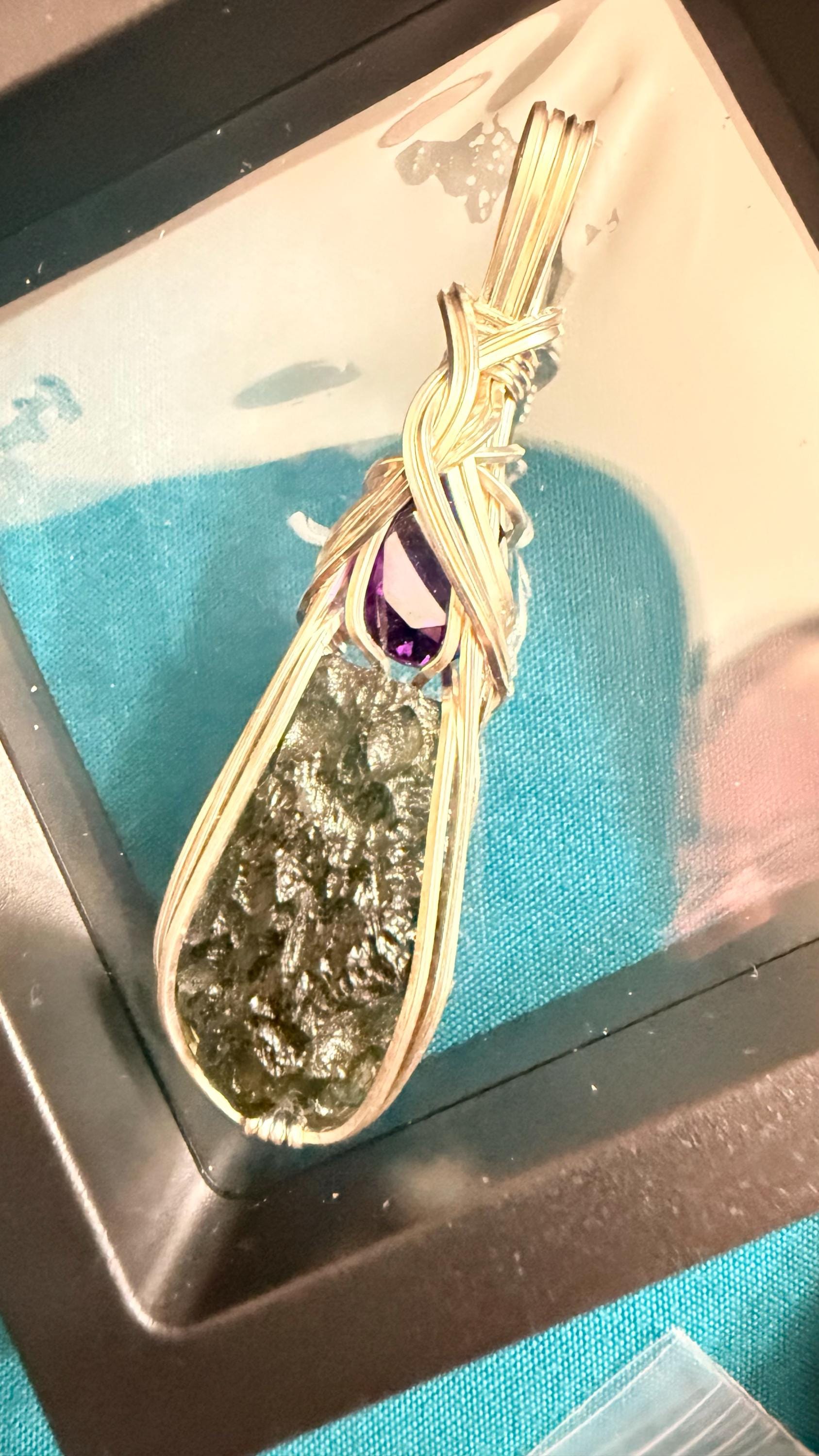 Be One of the Few to Own a Piece of Natural and Complete Moldavite Crystal with Amethyst Pendants