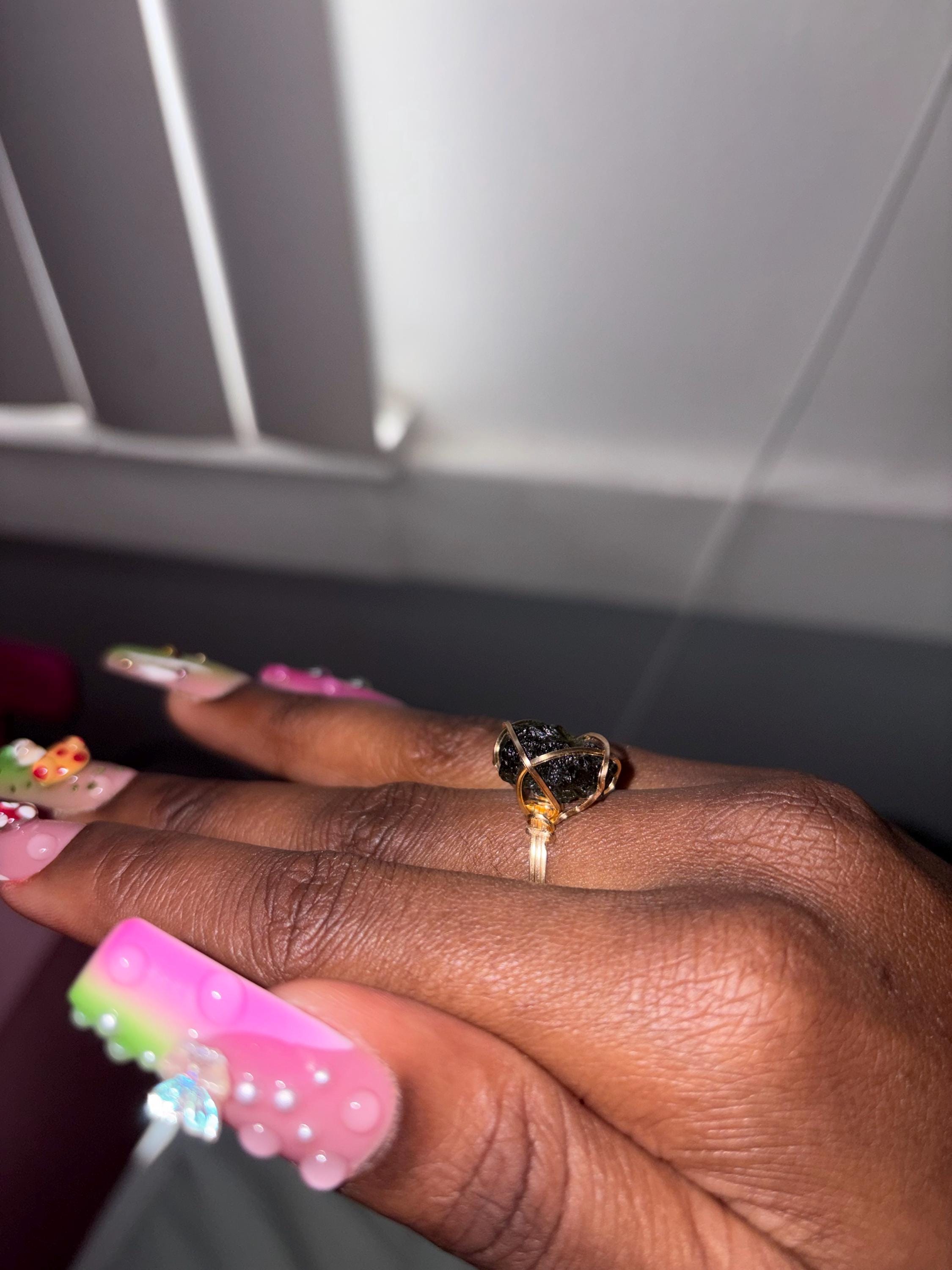 Be One of the Few to Own a Piece of Natural and Complete Moldavite Crystal rings