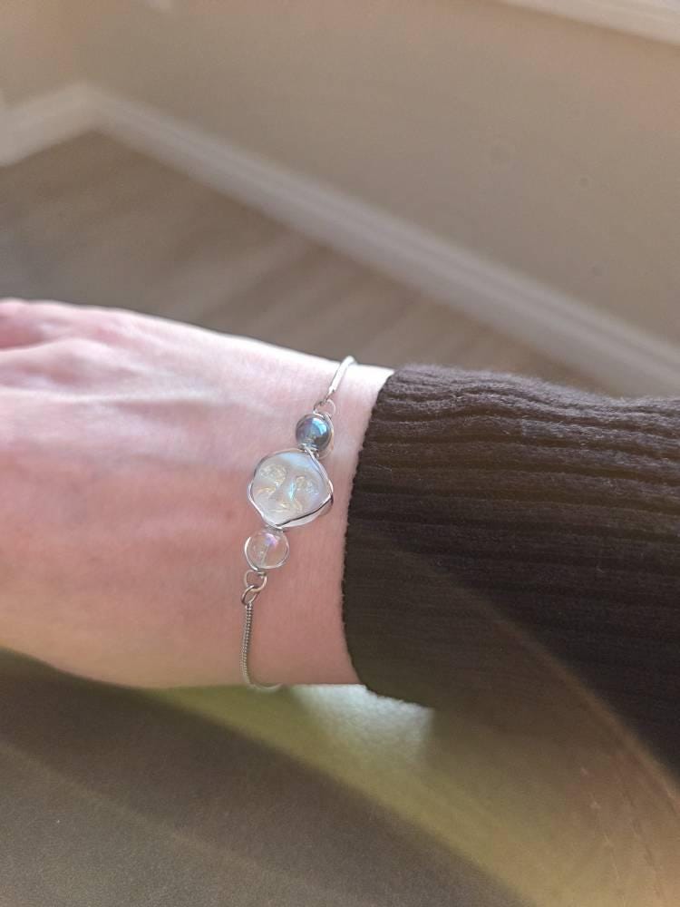 Full Moon Bracelet — a softly powerful companion for intention-setting, reflection, and staying aligned with your path. This moon phase design blends aura quartz, symbolic beads, and gentle guidance in a piece you can wear every day.