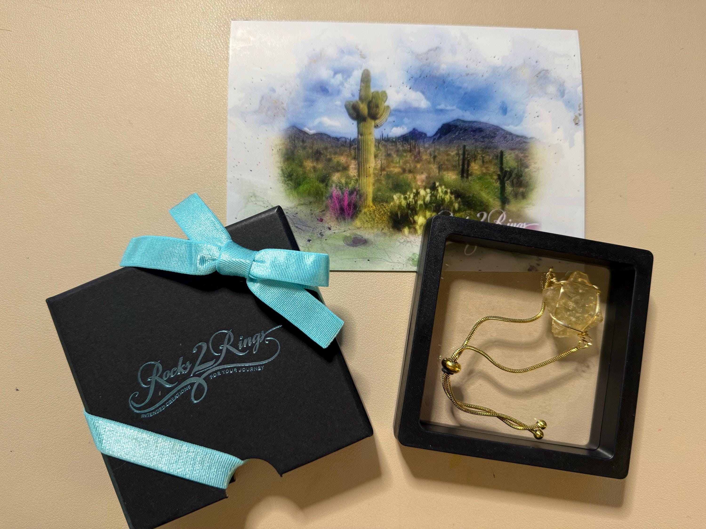 Sandra has done it again! What a beautiful Libyan Desert Glass Gold Wrapped Pendant! I love her perfection in the wire wrapping and the quality of the stone itself. Her handwritten note actually made me tear up because it has come into my life during a rather difficult health period for me. She writes as if she is standing with you and is speaking directly to your heart. You can feel the Love! I will wear this amazing piece knowing the artist it came from truly cares about humanity. Thank you Sandra. I am a customer for life and will definitely be returning for more of your celestial pieces! Suzi
