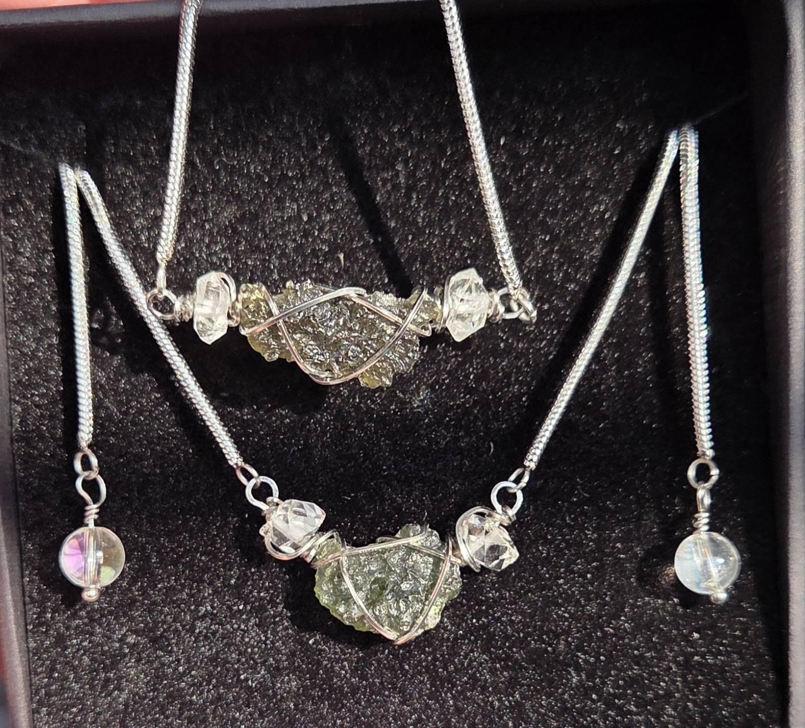 Moldavite Necklace Combines Moldavite Herkimer Diamonds, Our Healing Crystal, Moldavite Pendant is Real Moldavite with certification of authenticity. Moldavite is amazing for Manifestation, Transformation and High Vibrations.